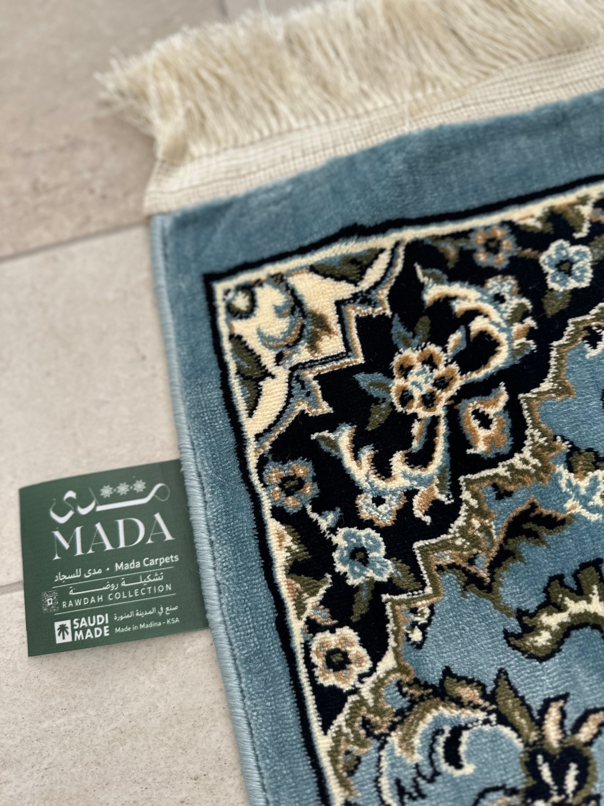bring serenity and elegance to your prayer space with the rawdah prayer rug by mada carpets, a saudi-based brand renowned for crafting high-quality prayer rugs inspired by islamic landmarks. inspired by the carpets within Masjid an Nabawi, this rug combines comfort, beauty, and spiritual depth, creating a dedicated space for reflection and connection every time you pray.